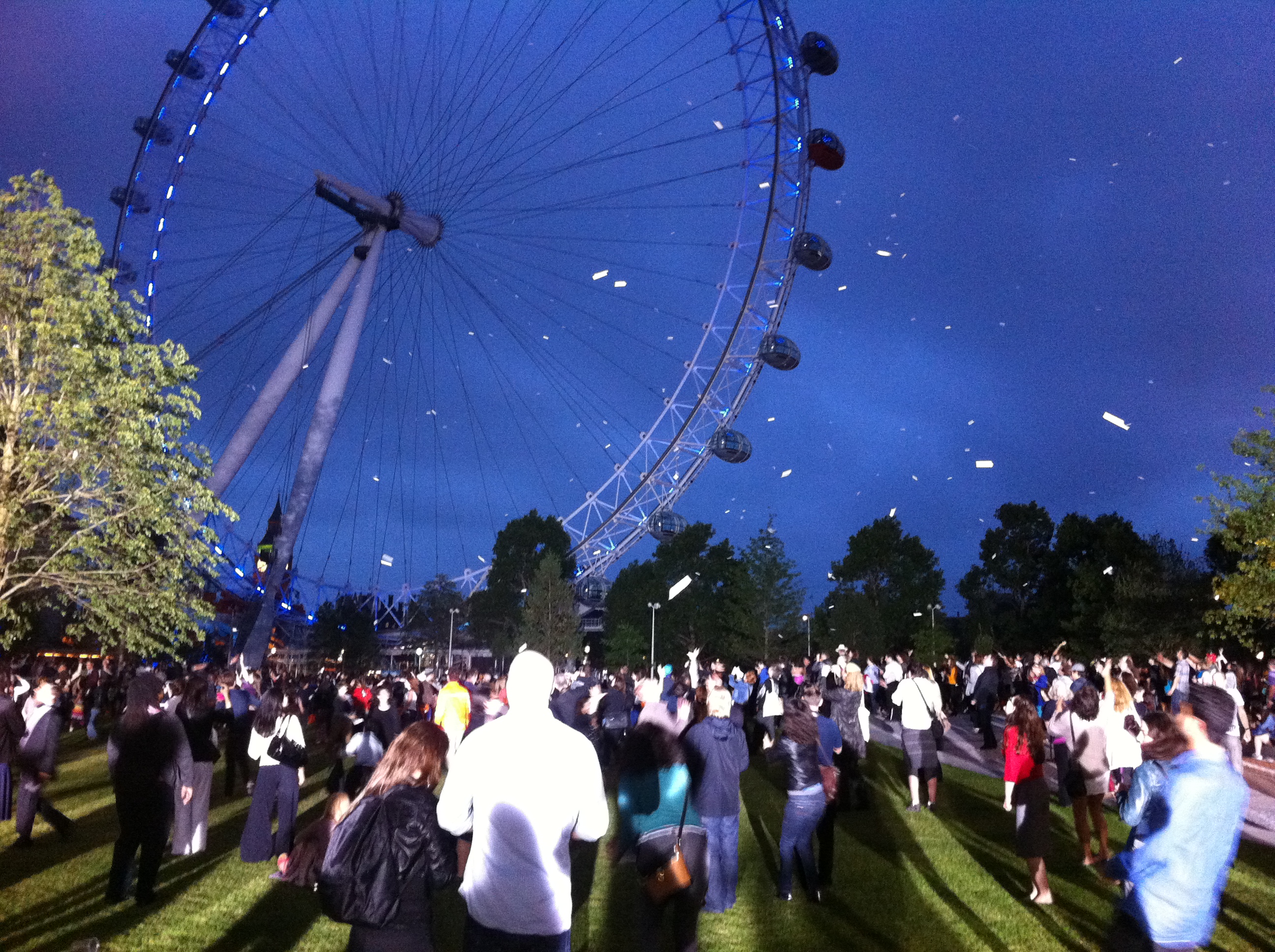Tuve el privilegio de asistir al bombardeo de poemas sobre Londres del Colectivo Casagrande el martes 26 de junio. Una increible acción rodeada de una atmósfera de mucho juego y lectura. A eso de las 21.15 miles de poemas fueron lanzados desde un helicóptero por Cristobal y Julio, mientras en tierra Jose y Santiago junto a muchos esperábamos que la lluvia cayera sobre el Garden of Jubilee a las orillas del Tamesis.