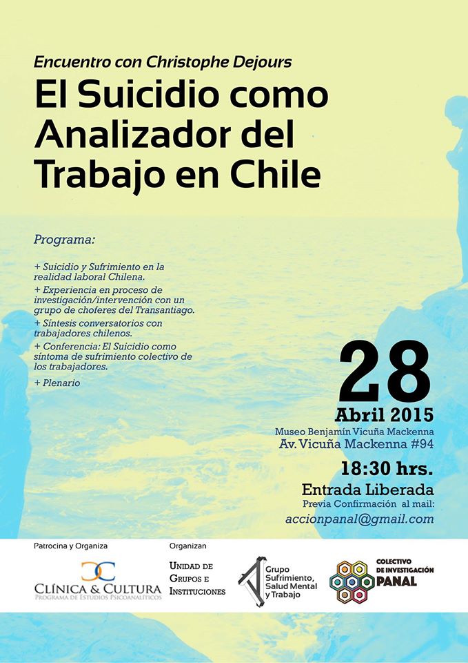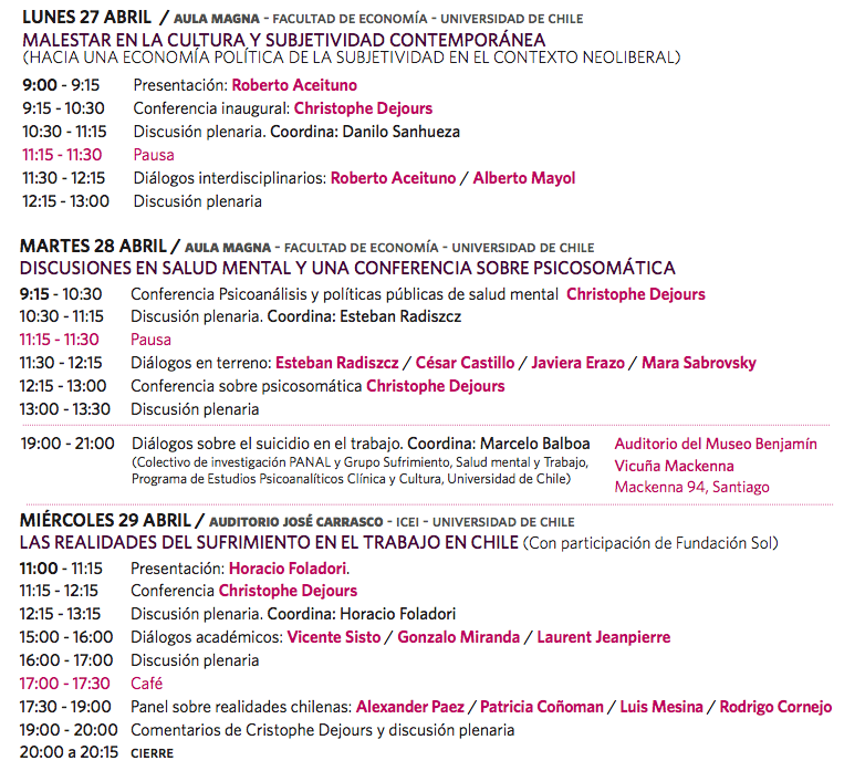 Seminario Subjetividad Trabajo y Salud Mentalpor marce5227 abril, 2015El Programa General: DIALOGO DIA MARTES 28 Etiquetas:salud mentalTrabajo Deja una respuesta Cancelar la respuestaTu dirección de correo electrónico no será publicada. Los campos obligatorios están marcados con *Nombre * Correo electrónico * Web Comentario *