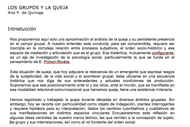 Las observaciones contenidas en el libre Chile Profundo, permiten constatar que no sólo basta la conciencia del sufrimiento para su abordaje si no la critica de su procesamiento. Al respecto sugiero ver de la Escuela de Pichón Riviere: LOS GRUPOS Y LA QUEJA. Quiroga.