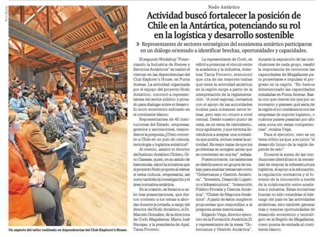 Octubre y Noviembre de 2024. Se pretende indagar y detectar en conjunto con la ciudadanía y grupos de experta/os las capacidades, brechas, desafíos y oportunidades -promoviendo procesos de reflexión en actores claves- buscando elementos de consenso y facilitadores en miras a un proyecto común de desarrollo económico y social regional y nacional en torno a Antártica. Para ello haremos un proceso que permita construir una Hoja de ruta común.