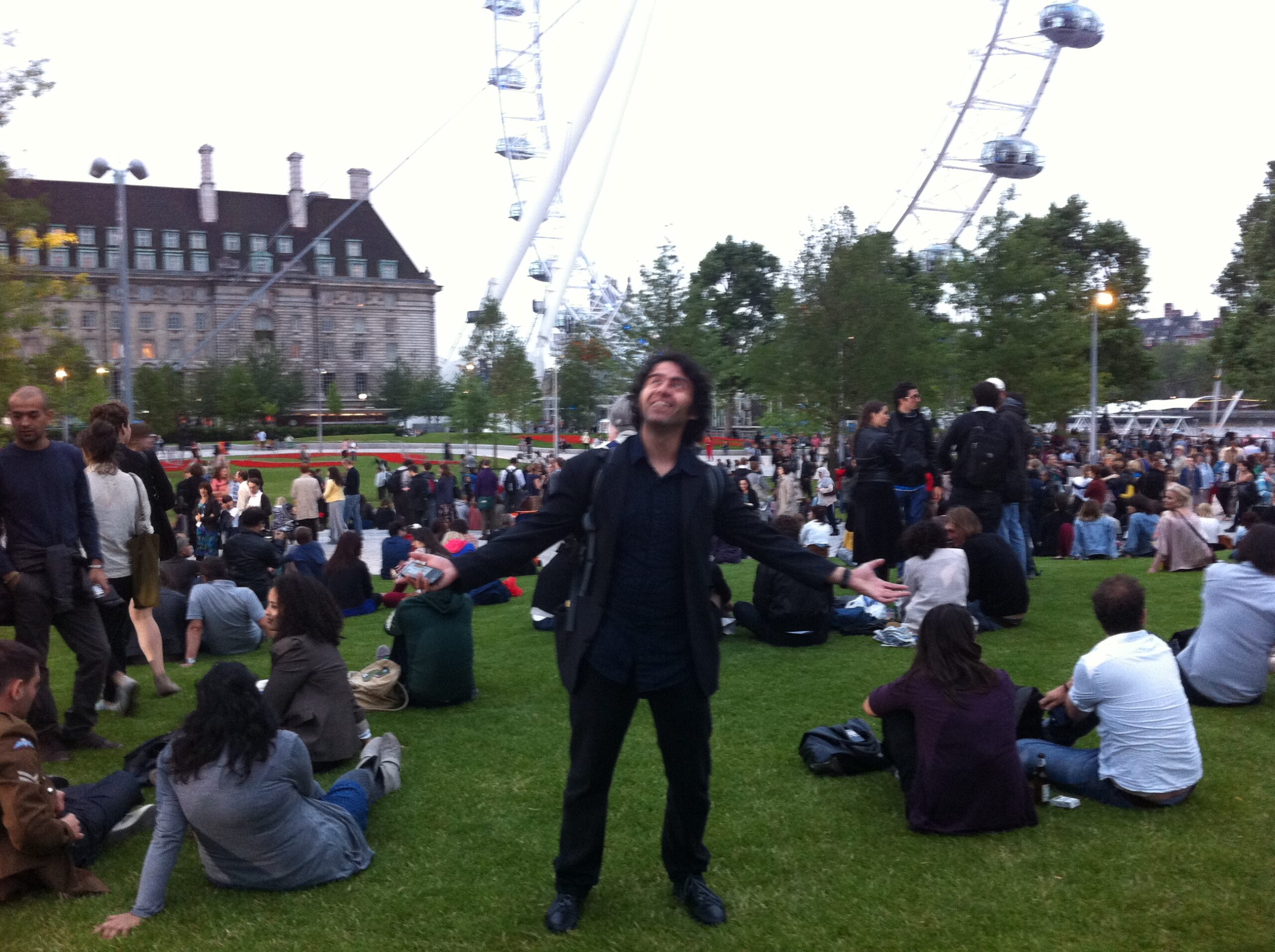 Tuve el privilegio de asistir al bombardeo de poemas sobre Londres del Colectivo Casagrande el martes 26 de junio de 2012. Una increíble acción rodeada de una atmósfera de mucho juego y lectura. A eso de las 21.15 miles de poemas fueron lanzados desde un helicóptero por Cristobal y Julio, mientras en tierra Jose y Santiago junto a muchos esperábamos que la lluvia cayera sobre el Garden of Jubilee a las orillas del Tamesis.